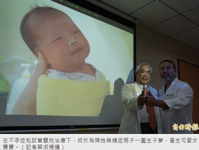 - 台湾首位利用睾丸单枪取精之无精症试管婴儿成功